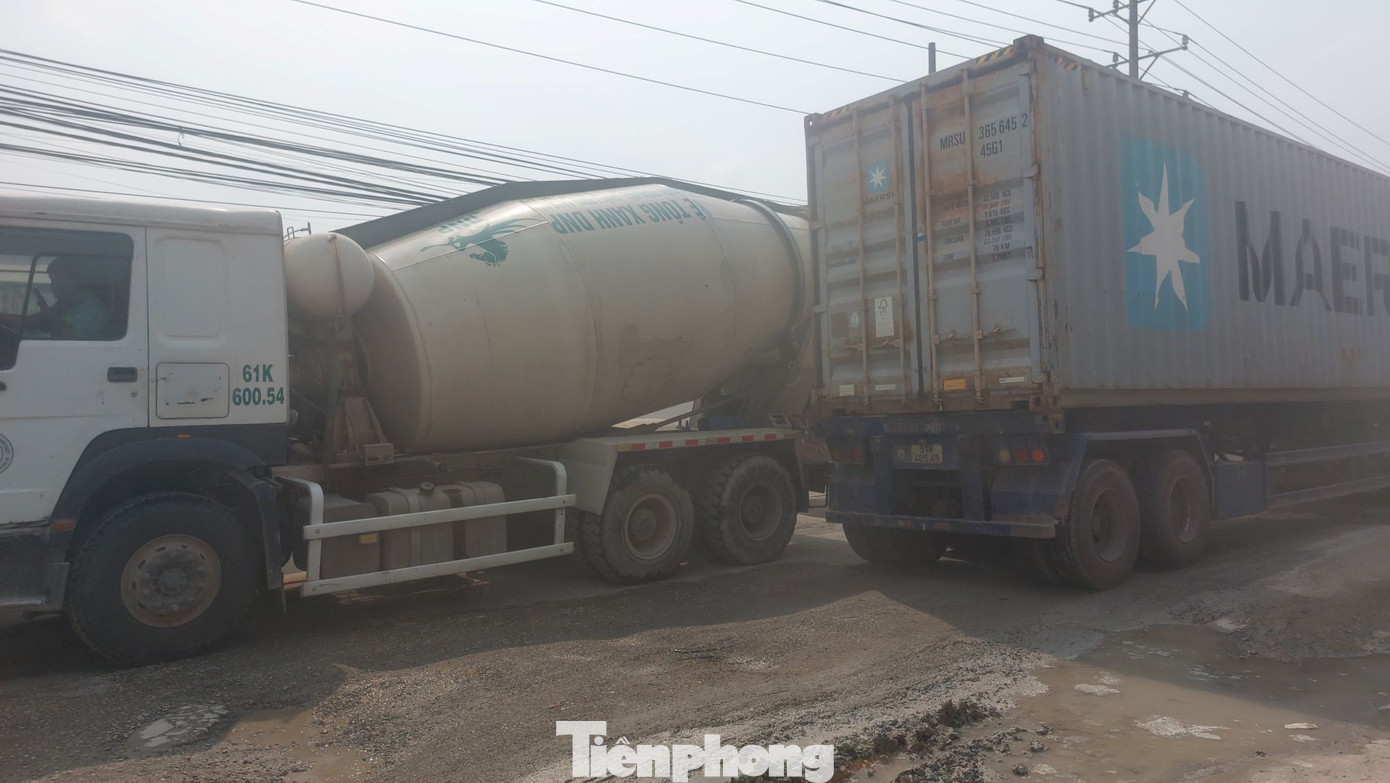 Hình ảnh quen thuộc trên đường Cầu Định là xe bồn, đầu kéo container, tải nặng nối đuôi nhau. Điểm giữa và cuối đường này có khoảng 15 công ty, trong đó có nhà máy sản xuất thép, trộn bê tông.