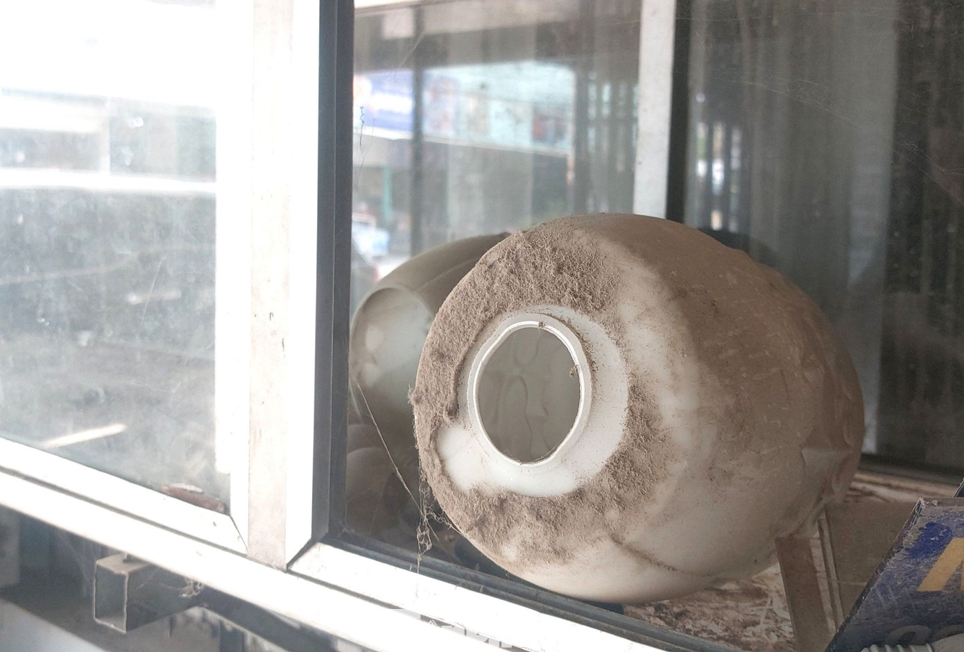 Bụi bám đầy vật dụng trong nhà dân hai bên đường Cầu Định.