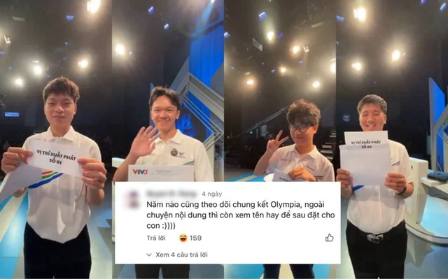 Tuy nhiên, không chỉ có vậy, có vô vàn lý do “kỳ quặc” khiến fan hâm mộ vẫn trung thành dõi theo chương trình suốt ngần ấy năm. Chẳng hạn như mới đây, trong bài đăng giới thiệu về 4 thí sinh tham gia trận Chung kết năm Olympia, giữa vô vàn comment chúc mừng đến 4 nhà leo núi, thì có một comment khiến ai cũng phải phì cười: “Năm nào cũng theo dõi chung kết Olympia, ngoài chuyện nội dung thì còn xem tên hay để sau đặt cho con”.