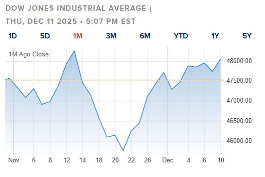 Tuy nhiên, thị trường Mỹ vẫn tăng điểm sau cuộc họp. Dow Jones tăng 1,05%, chốt phiên ở mức 48.057,75 điểm. S&P 500 nhích nhẹ 0,67% lên mức 6.886,68 điểm và Nasdaq tăng 0,33% lên mức 23.654,155 điểm.