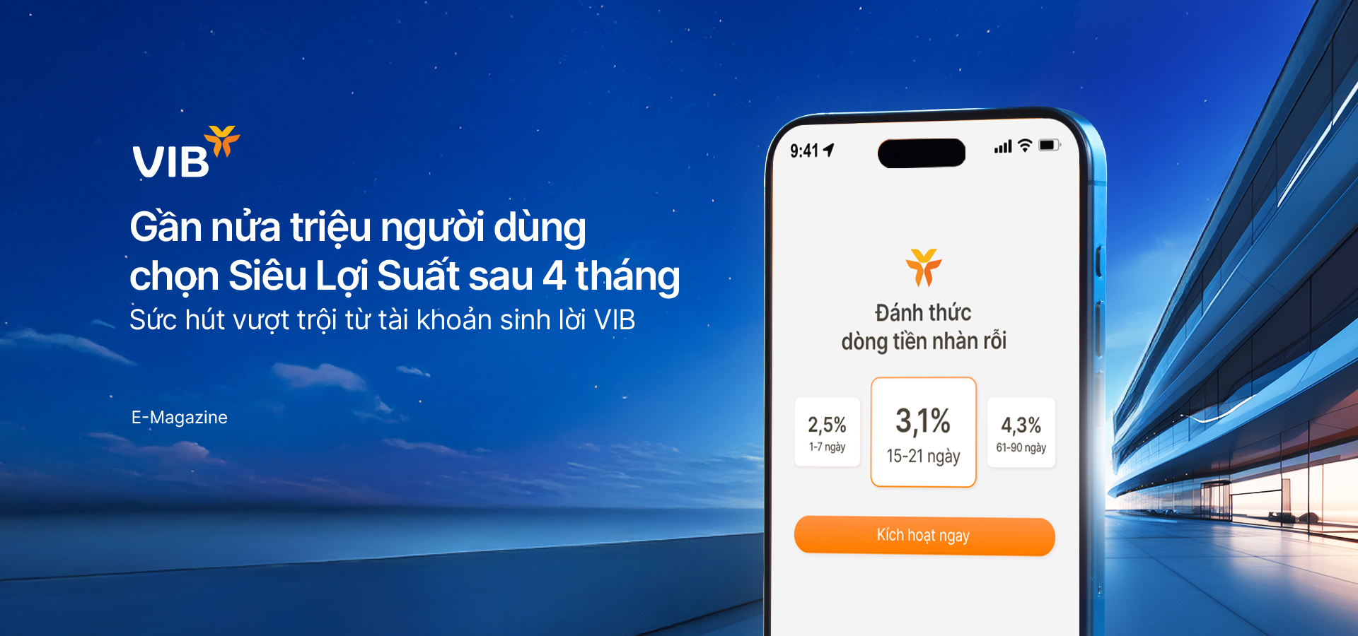 Trước nhu cầu đó, VIB cho ra mắt tài khoản Siêu Lợi Suất, nơi mỗi đồng vốn nhàn rỗi đều có thể tự làm việc. "Đây không chỉ là sản phẩm tài chính mới, mà là trục chiến lược trung tâm, phản ánh tư duy phát triển bền vững của chúng tôi. Xa hơn, nó tạo một cuộc cách mạng trong tư duy về dòng tiền" , đại diện ngân hàng cho biết.