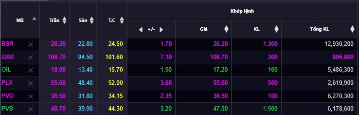 Trên thị trường chứng khoán, phiên giao dịch đầu tiên của năm Bính Ngọ 2026, ngày 23/2, cổ phiếu nhóm dầu khí GAS, PLX, BSR, PVD tăng kịch trần lần lượt lên mức 108.700 đồng/cp, 55.600 đồng/cp, 26.200 đồng/cp và 36.500 đồng/cp. Ngoài ra, các cổ phiếu PVS, OIL, PVB đều có đà tăng tốt từ 3-10%.