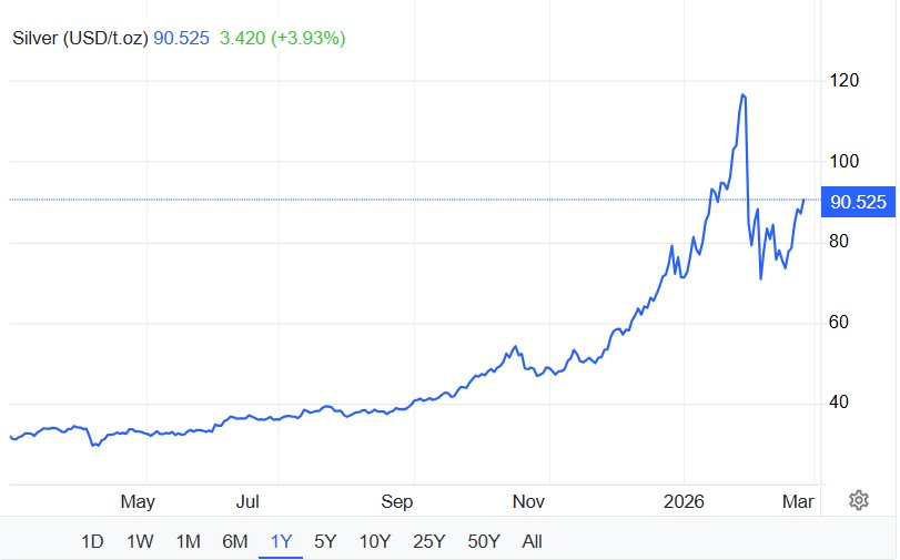 Theo dữ liệu thị trường, giá bạc giao ngay tăng hơn 3%, lên khoảng 90,5 USD/ounce. Đà đi lên được thúc đẩy sau khi Mỹ chính thức áp mức thuế toàn cầu tạm thời 10% từ ngày 24/2. Truyền thông quốc tế cho biết Nhà Trắng đang cân nhắc nâng mức thuế này lên 15%, trong bối cảnh phán quyết của Tòa án Tối cao Mỹ tuần trước đã bác bỏ các biện pháp thuế quan trả đũa trên diện rộng từng được cựu Tổng thống Donald Trump áp dụng.