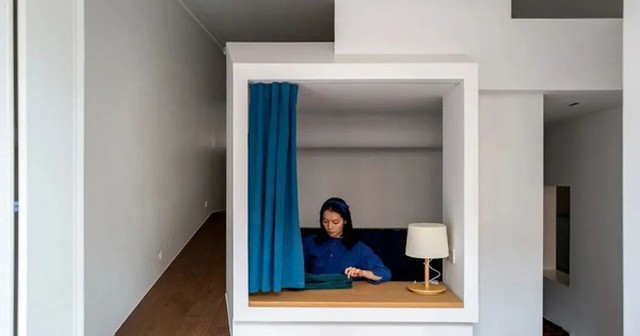 Điểm thú vị là "kén" không phải một phòng kín hoàn toàn. Nó được thiết kế như một "nửa phòng" – có tính riêng tư về tâm lý, nhưng vẫn giữ được sự liền mạch thị giác với các khu vực xung quanh.