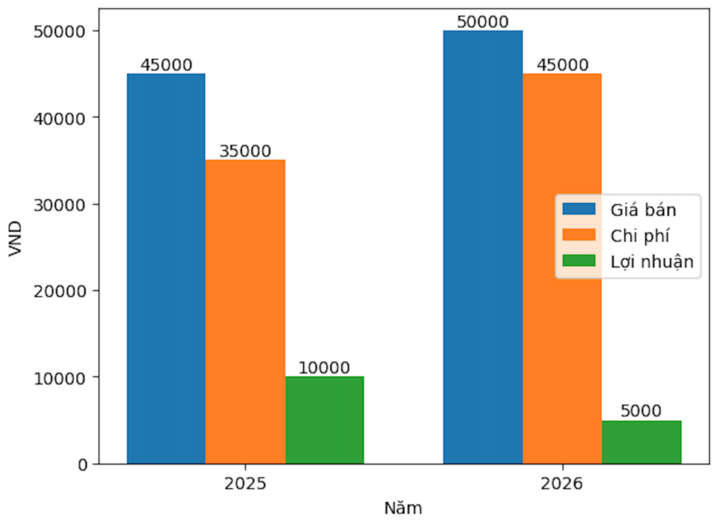 Biểu đồ so sánh chi phí, lợi nhuận (đơn vị tính: tô phở).