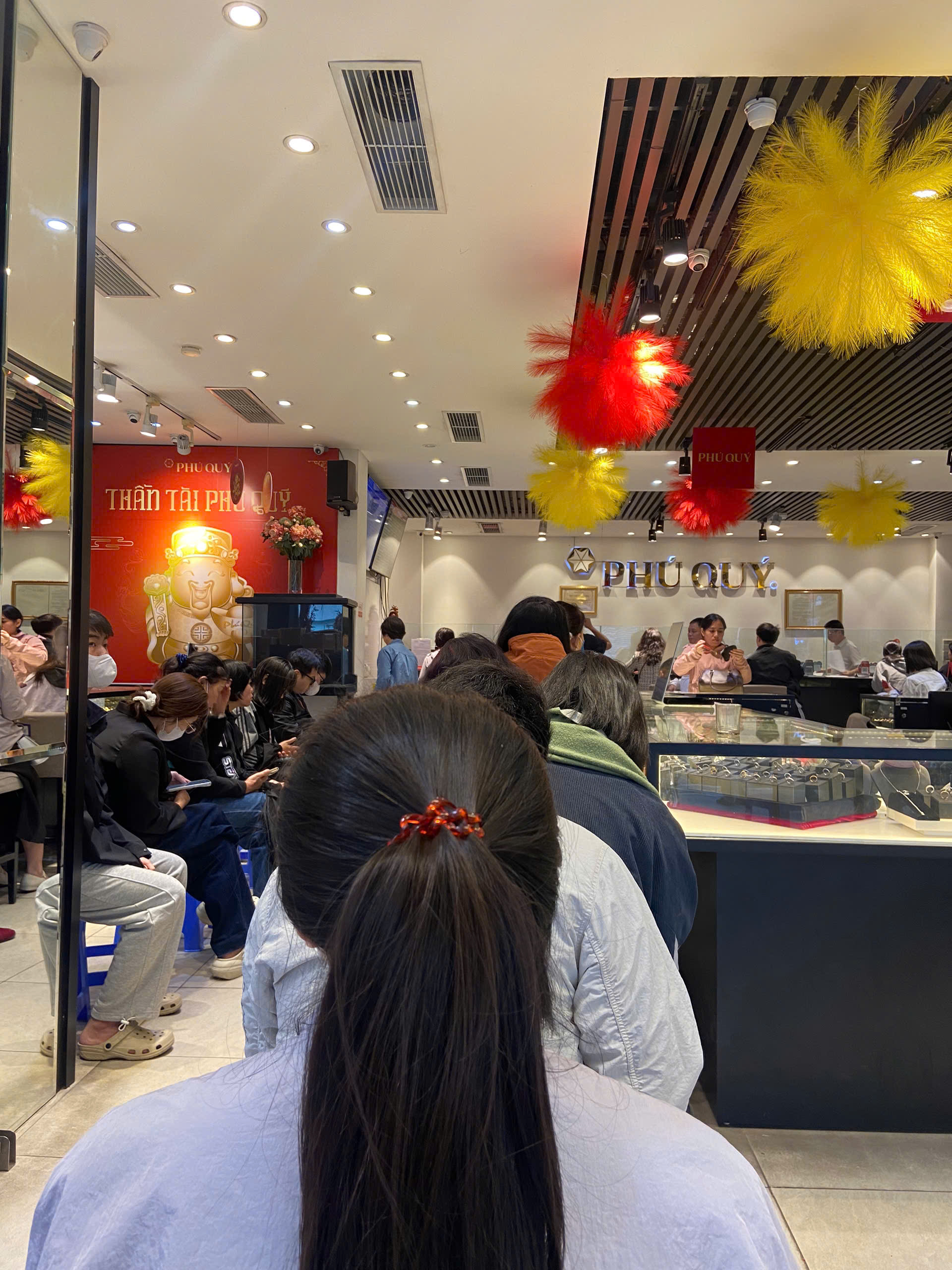 Khách hàng giao dịch tại Phú Quý được vào thẳng trong cửa hàng, không cần lấy số thứ tự. Lượng khách nhìn chung không đông, trung bình mỗi người chỉ cần chờ khoảng 15 phút là đến lượt