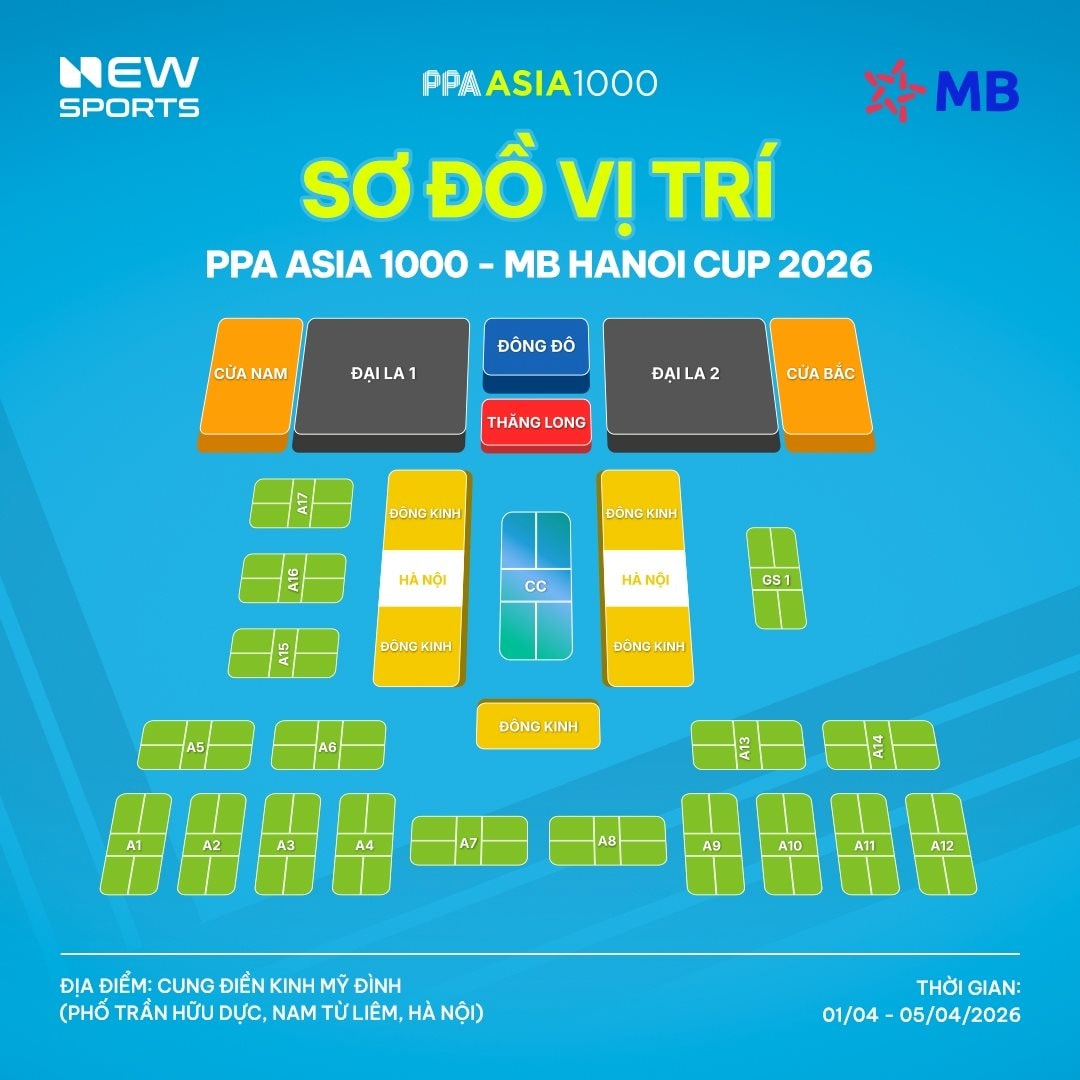 Một trong những lý do khiến vé chung kết tăng nhiệt nằm ở chất lượng chuyên môn của giải. PPA Asia 1000 – MB Hanoi Cup 2026 diễn ra từ ngày 1–5/4 tại Cung điền kinh trong nhà Mỹ Đình, Hà Nội và thuộc hệ thống PPA Tour Asia – chuỗi giải pickleball chuyên nghiệp hàng đầu thế giới.