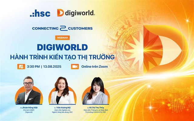 Để chia sẻ sâu hơn về hành trình chinh phục mốc " tỷ USD", Digiworld đã phối hợp cùng HSC tổ chức Hội thảo C2C: DIGIWORLD - HÀNH TRÌNH KIẾN TẠO THỊ TRƯỜNG, sẽ diễn ra vào lúc 15h30 thứ Tư, ngày 13/08/2025. Sự kiện sẽ có sự tham dự của các khách mời đặc biệt: Ông Đoàn Hồng Việt – Chủ tịch HĐQT Digiworld và Chuyên gia phân tích của HSC.