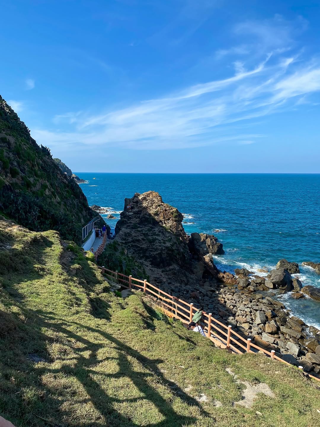 Để đặt chân đến chốn linh thiêng này, du khách sẽ di chuyển về phía xã đảo Nhơn Lý, cách trung tâm thành phố Quy Nhơn khoảng 20km. Sau khi mua vé tham quan khu du lịch Eo Gió, bạn sẽ đi theo con đường đi bộ ven biển với hàng rào đỏ trắng đặc trưng. Phần thú vị nhất chính là đoạn men theo những bậc thang đá để xuống sát mép biển, nơi Giếng Tiên ẩn mình giữa những ghềnh đá nhấp nhô. Từ đây, bạn có thể phóng tầm mắt tận hưởng khung cảnh đại dương bao la, nơi sắc xanh ngọc bích của biển cả hòa làm một với bầu trời.