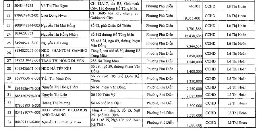 Lý do công khai, theo Thuế Hà Nội, những cá nhân này đã vi phạm quy định tại điểm a khoản 1 Điều 100 Luật Quản lý thuế số 38/2019/QH14 và điểm g khoản 1 Điều 29 Nghị định số 126/2020/NĐ-CP ngày 19/10/2020 của Chính phủ.