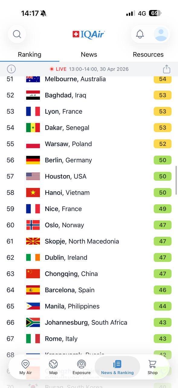 Ở ngưỡng dưới 50, chất lượng không khí của Hà Nội trong buổi sáng được đánh giá là tiệm cận với nhiều thành phố có môi trường trong lành trên thế giới, trong đó có các đô thị tại Na Uy – quốc gia vốn nổi tiếng với tiêu chuẩn không khí sạch. Dù chỉ mang tính thời điểm, sự “trong veo” này vẫn tạo nên khác biệt rõ rệt so với hình ảnh quen thuộc của Hà Nội vào những ngày ô nhiễm.