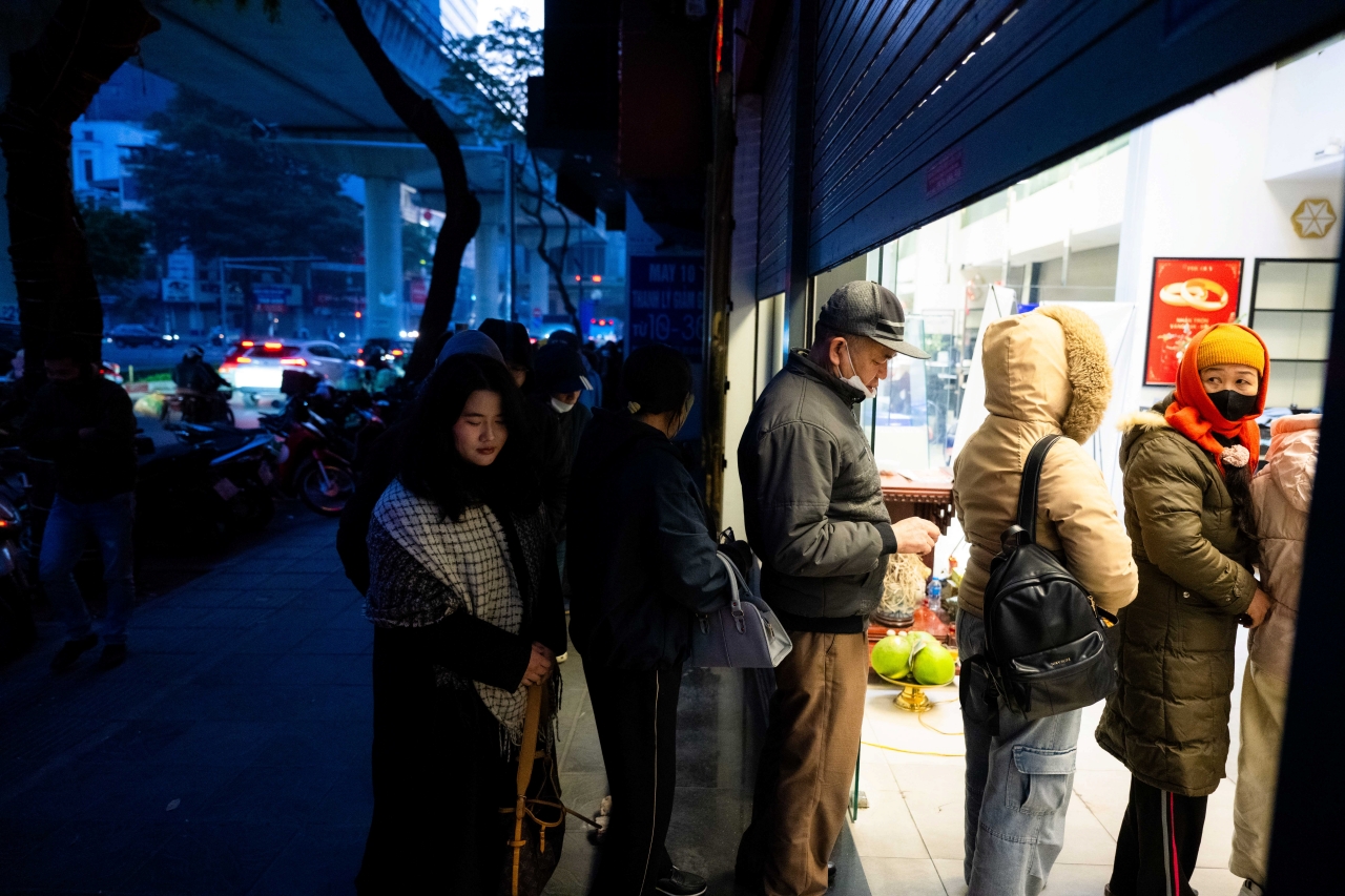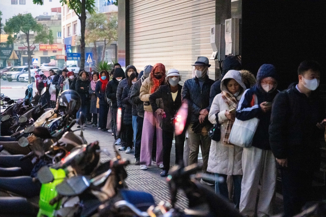 Giữa cái rét cắt da của Hà Nội sáng sớm, dòng người vẫn lặng lẽ xếp hàng trước tiệm bạc trên phố, hy vọng kịp mua được khi giá đang tăng từng ngày.