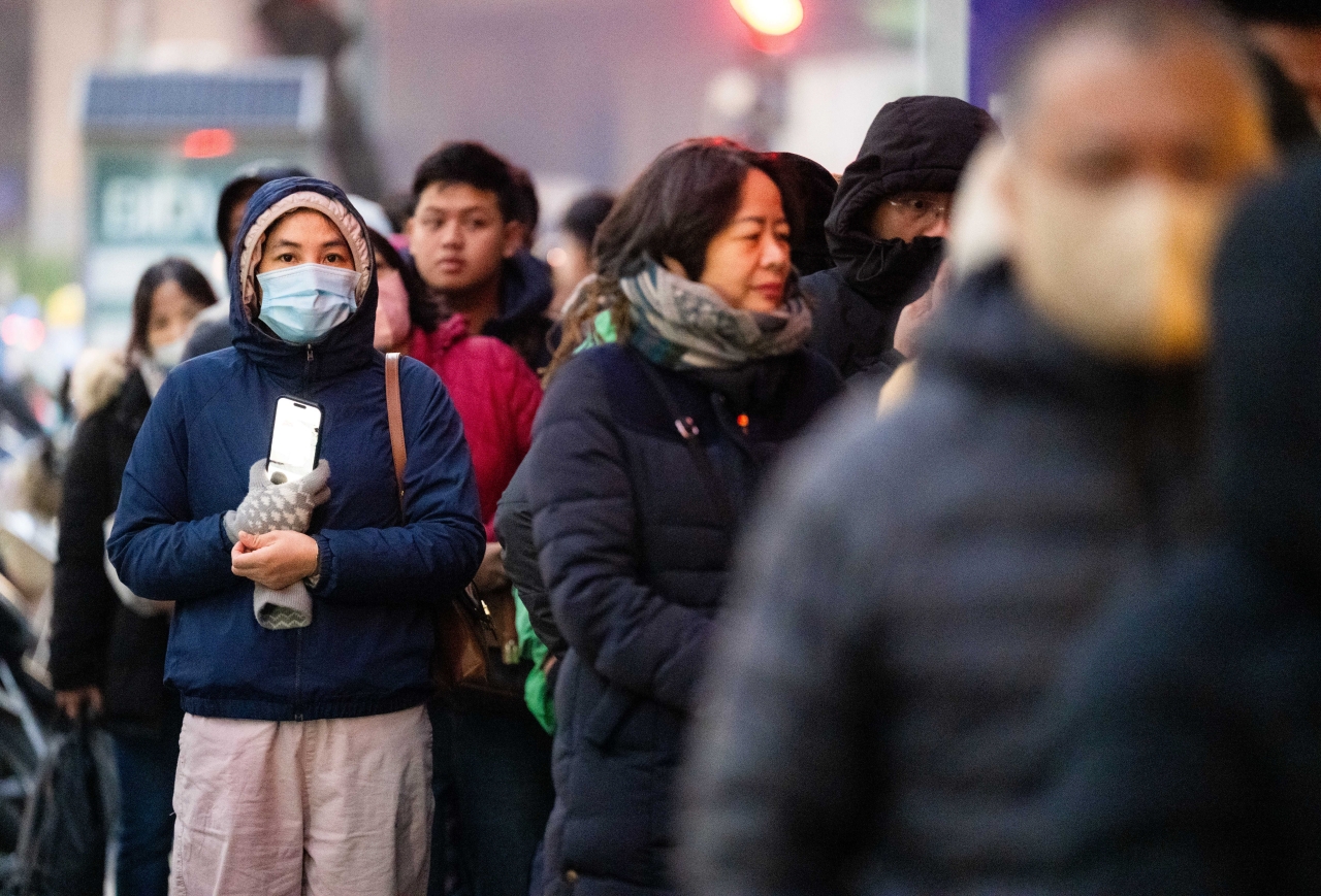 Ai cũng quàng khăn len, áo ấm để có thể đứng chờ nhiều giờ bên ngoài thời tiết giá lạnh