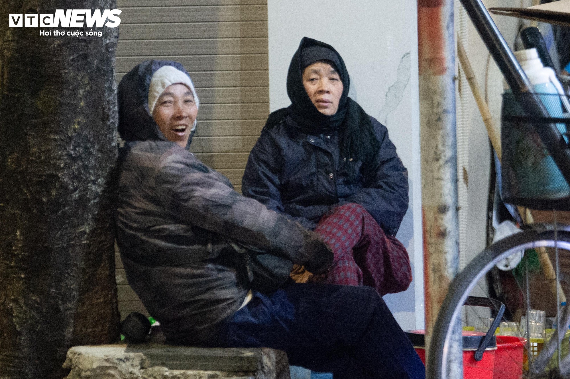 Đêm muộn, mưa lạnh kèm gió mạnh khiến nhiều hàng quán vắng khách, buộc phải thu dọn sớm. Một số người lao động kết thúc công việc sớm hơn thường lệ, tìm góc khuất gió để nghỉ tạm.