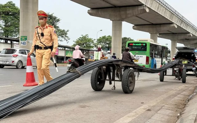 Tiếp đó, vào khoảng 16h00 cùng ngày, tại khu vực trước số 160 đường Cầu Diễn (phường Minh Khai, quận Bắc Từ Liêm), tổ tuần tra phát hiện xe mô tô kéo theo phương tiện tự chế chở bó thép dài khoảng 11,7m, nặng hơn 600kg. Người điều khiển là Trần Hữu H. (SN 1979, quê Tuyên Quang). Tổ công tác đã lập biên bản vi phạm hành chính, tạm giữ phương tiện vi phạm, đồng thời yêu cầu người vi phạm tháo gỡ hàng hóa chở trên xe để bảo đảm an toàn.