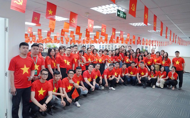 Hàng ngàn VPBanker cùng hòa nhịp quốc ca, phủ đỏ văn phòng bằng áo cờ tổ quốc