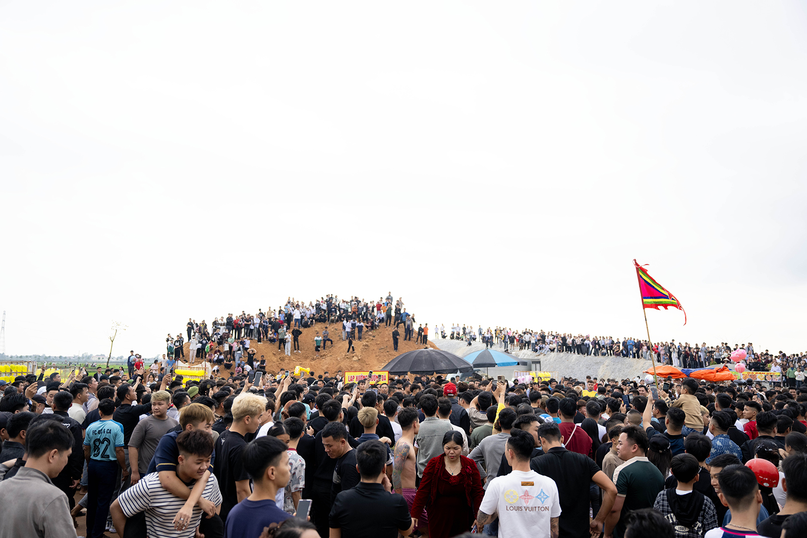 Đám đông chứng kiến những khoảnh khắc căng thẳng, không khỏi lo lắng cho những người bị xô đẩy, vùi lấp phía dưới.