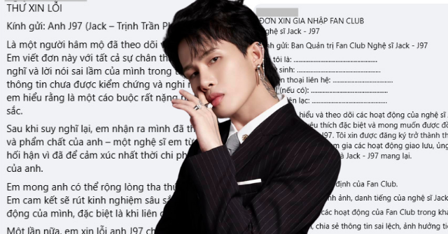 Hàng trăm "thư xin lỗi, đơn làm fan” xuất hiện dưới thông báo Jack kiện Thiên An: Chuyện gì đây?