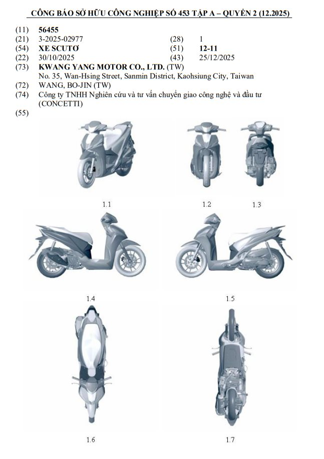 Tại Quyển 2 thuộc Công báo số 453 tập A do Cục sở hữu trí tuệ Việt Nam đăng tải vào tháng 12/2025, xuất hiện một mẫu xe tay ga hoàn toàn mới được Công ty Kwang Yang Motor (KYMCO) đăng ký bản quyền kiểu dáng công nghiệp. Theo những hình ảnh được công bố, đây có thể là mẫu xe ga hybrid đầu tiên của hãng, có tên là People R Hybrid.