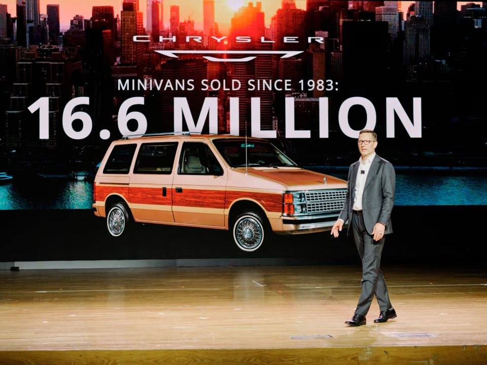 Thế nhưng, ngay phía sau ông lại là hai chiếc Chrysler Pacifica, mẫu minivan vốn đã quá quen thuộc, nay chỉ được tinh chỉnh nhẹ về đèn pha và một vài tính năng cơ bản (thứ mà giới chuyên môn gọi là bản "refresh").