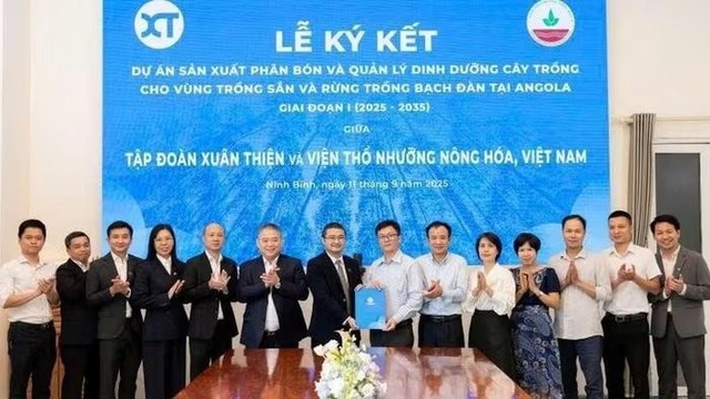 Ngày 11/9 tại Ninh Bình, Viện Thổ nhưỡng Nông hóa – Viện Khoa học nông nghiệp Việt Nam (Bộ Nông nghiệp và Môi trường) cùng Công ty TNHH Thương mại và Nông nghiệp Khang An (thành viên Tập đoàn Xuân Thiện) đã ký kết thỏa thuận hợp tác quốc tế triển khai “Dự án sản xuất phân bón và quản lý dinh dưỡng cây trồng cho vùng trồng sắn và rừng bạch đàn tại Angola giai đoạn 2025–2035”.