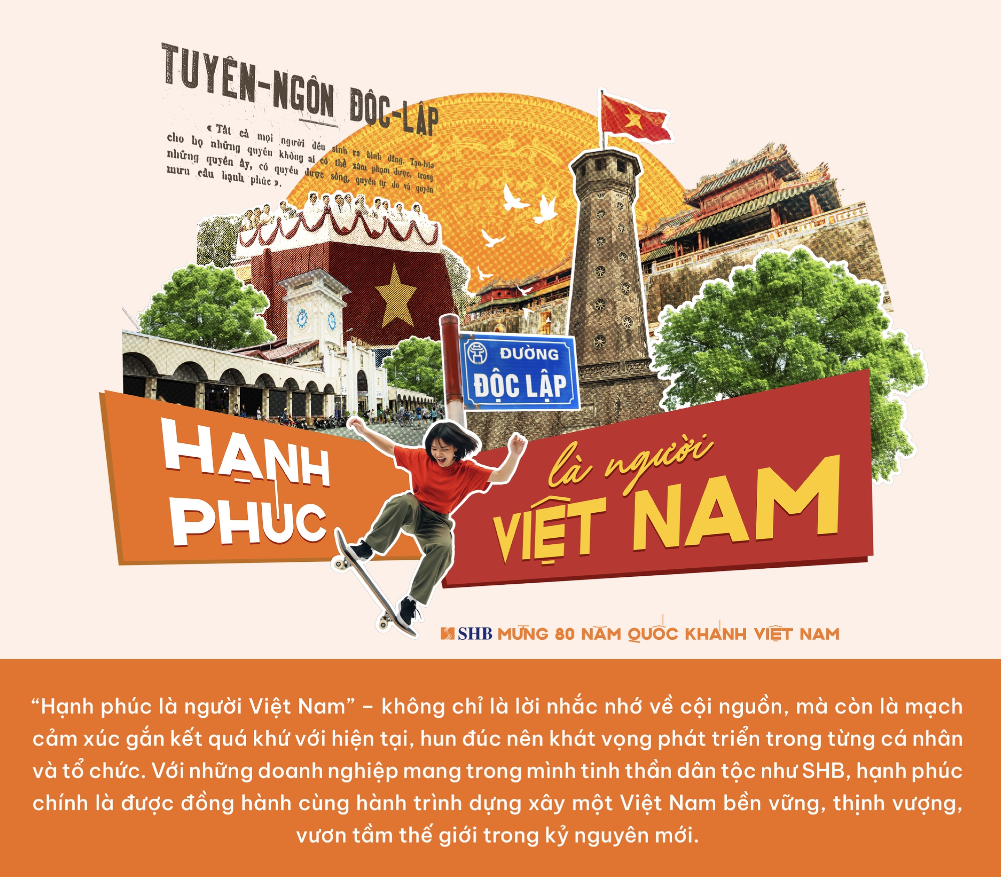 Nhân dịp kỷ niệm 80 năm Cách mạng Tháng Tám (19/8/1945 – 19/8/2025) và Quốc khánh nước Cộng hòa xã hội chủ nghĩa Việt Nam (2/9/1945 – 2/9/2025), SHB đã triển khai chuỗi hoạt động ý nghĩa mang chủ đề "Hạnh phúc là người Việt Nam" – như một lời tri ân sâu sắc gửi tới những thế hệ đi trước, đồng thời thắp lên ngọn lửa tự hào dân tộc trong mỗi người con đất Việt hôm nay.
