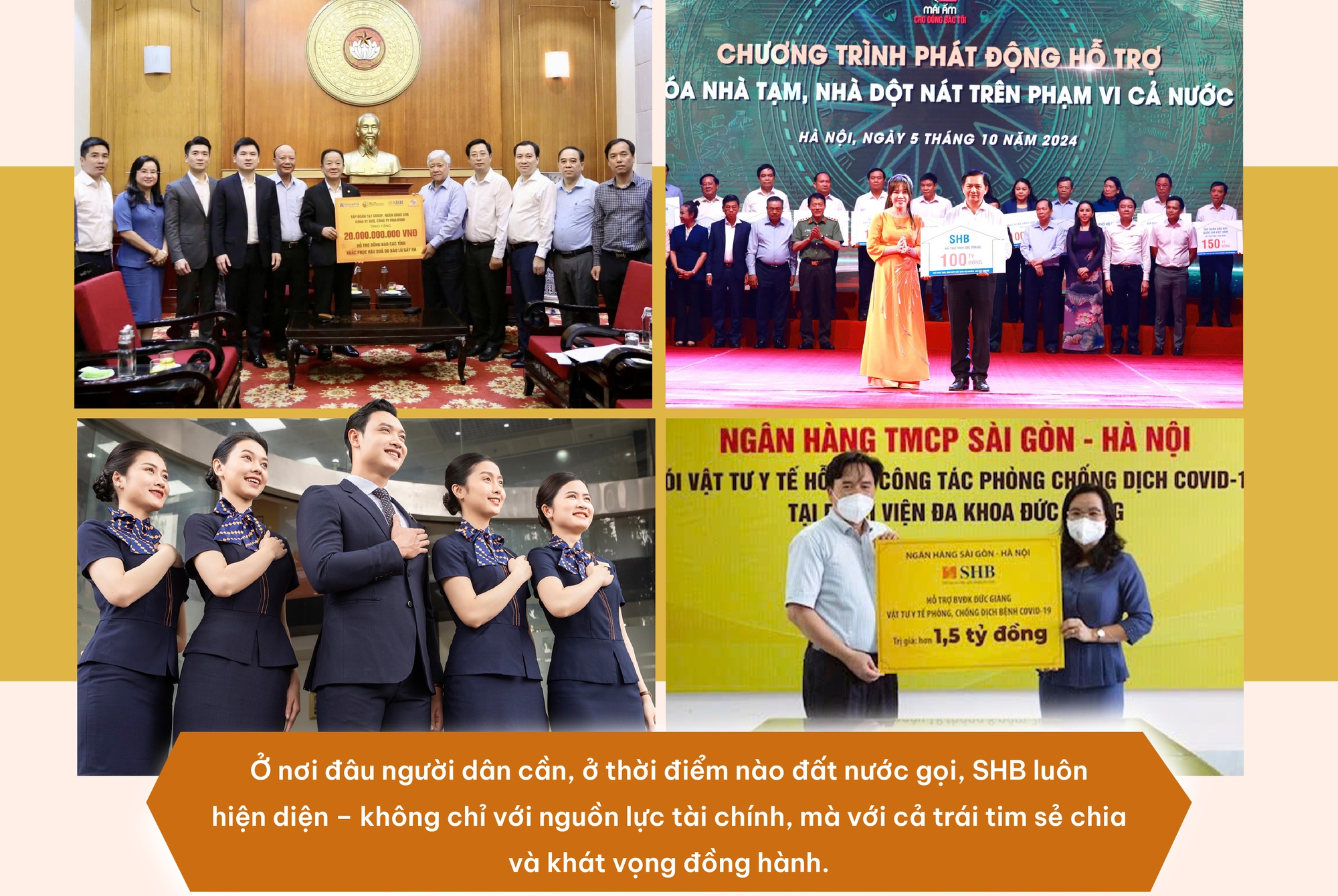 Ở nơi đâu người dân cần, ở thời điểm nào đất nước gọi, SHB luôn hiện diện – không chỉ với nguồn lực tài chính, mà với cả trái tim sẻ chia và khát vọng đồng hành cùng một Việt Nam vững vàng và nhân ái.
