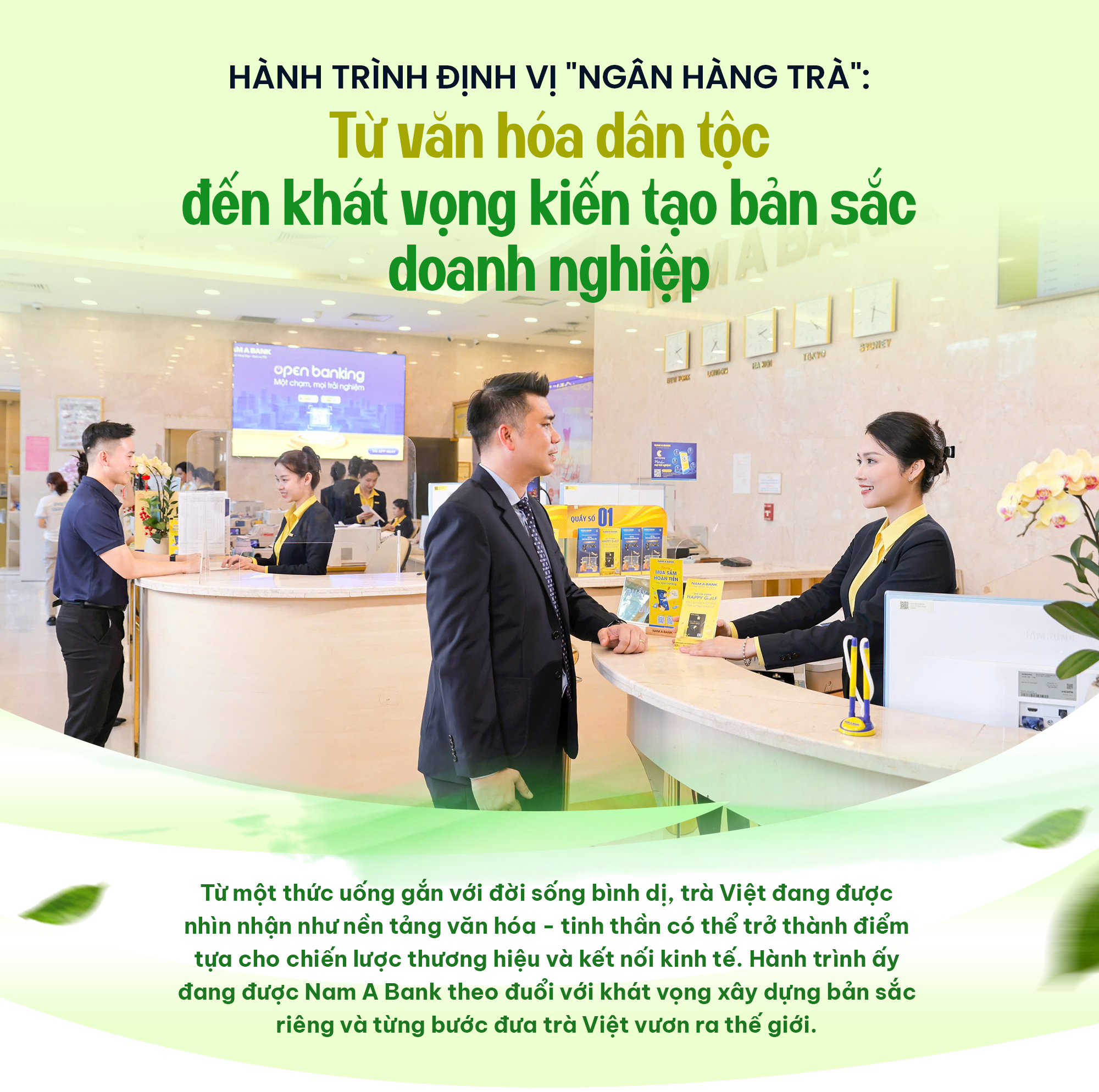 Việc gắn với trà cũng thể hiện một cam kết xã hội ở tầng sâu hơn. Trà là biểu tượng của sự tĩnh tại, chân thành, minh bạch. Khi lựa chọn biểu tượng này, Nam A Bank đồng thời gửi đi thông điệp về việc theo đuổi những giá trị lành mạnh, phát triển lợi nhuận nhưng không tách rời văn hóa và trách nhiệm cộng đồng. Lợi nhuận khi đó không chỉ để đo đếm, mà còn để tái đầu tư cho xã hội theo hướng bền vững.