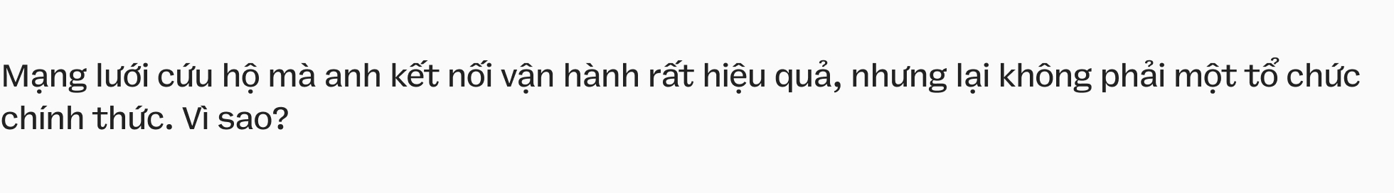 Vì nếu trở thành một tổ chức với điều lệ, quy định chặt chẽ, rất nhiều con người sẽ không thể tham gia. Những người tôi gặp trong các đợt cứu hộ – từ đội cano, đội drone, đến những người bốc vác, nấu cơm - họ đến vì thấy việc cần làm, chứ không vì danh xưng hay cơ cấu.