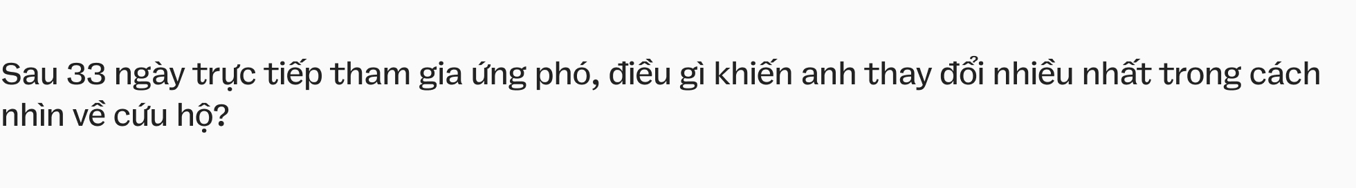 Điều quan trọng nhất vẫn là an toàn của lực lượng cứu hộ. Không cứu người bằng mọi giá, không liều lĩnh. Cứu được người mà mất thêm người thì đó không còn là cứu hộ.