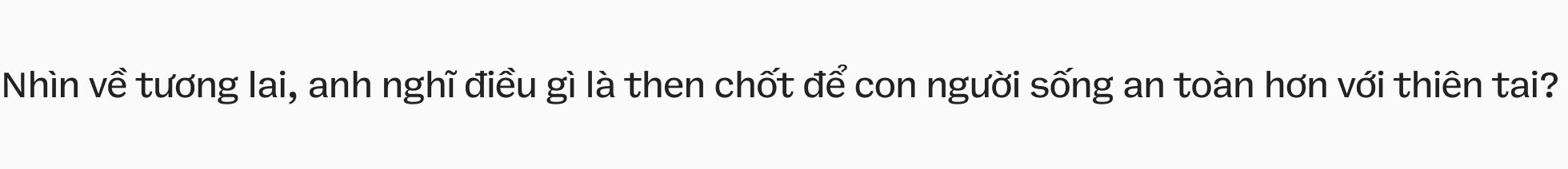 Đến năm 2020, chuỗi lũ lịch sử kéo dài từ Quảng Nam đến Hà Tĩnh khiến tôi bị cuốn hẳn vào công việc dự báo và cảnh báo thiên tai. Từ nghiên cứu khí hậu, tôi nhìn thấy xu hướng rất rõ: nếu Trung Quốc mưa liên tục 40-50 ngày thì Việt Nam chỉ cần mưa 3 ngày với hạ tầng hiện tại là đã không chịu nổi.