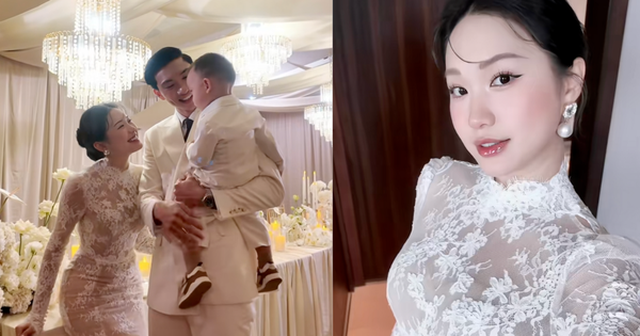 Bên cạnh đó, Văn Hậu lịch lãm trong bộ vest trắng, nắm tay vợ đầy tự hào. Cặp đôi còn cùng nhau ôm bé Lúa – trái ngọt đầu tiên của hôn nhân, khiến khung hình thêm phần trọn vẹn. Hình ảnh cả gia đình rạng rỡ dưới ánh đèn lung linh như minh chứng cho hạnh phúc viên mãn sau 2 năm gắn bó.