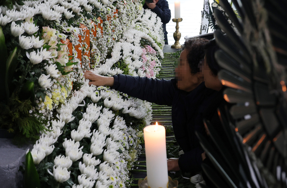 Người phụ nữ đau lòng trước bài vị của nạn nhân thiệt mạng (Ảnh: Yonhap)