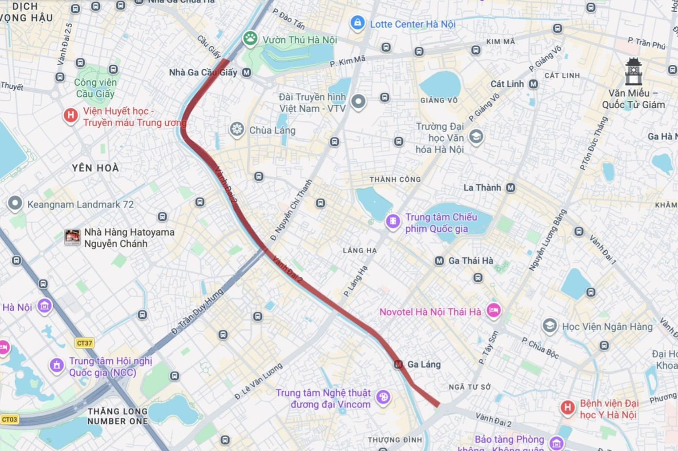 Tuyến Vành đai 2 Hà Nội (đoạn từ Ngã Tư Sở đến Cầu Giấy) dài gần 4 km, cơ bản trùng với trục đường Láng chạy dọc sông Tô Lịch. Đây là một trong những hành lang giao thông đông đúc phía Tây, kết nối Thanh Xuân, Đống Đa và Cầu Giấy.