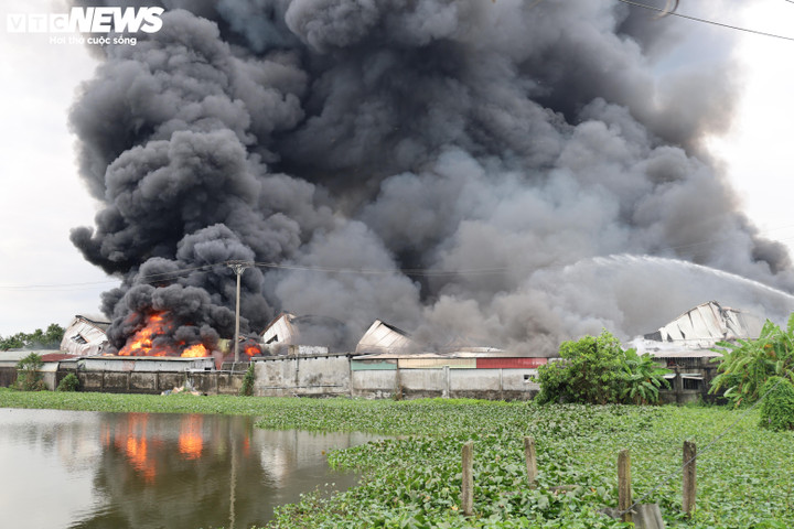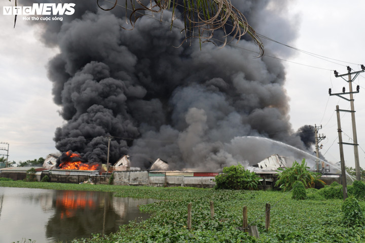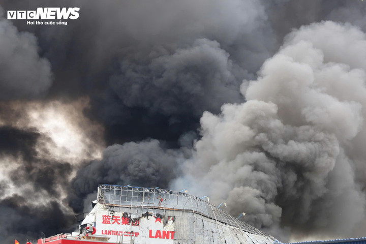Khói độc và lửa lớn bao trùm khu vực rộng khiến việc tiếp cận hiện trường của lực lượng chức năng gặp không ít khó khăn.