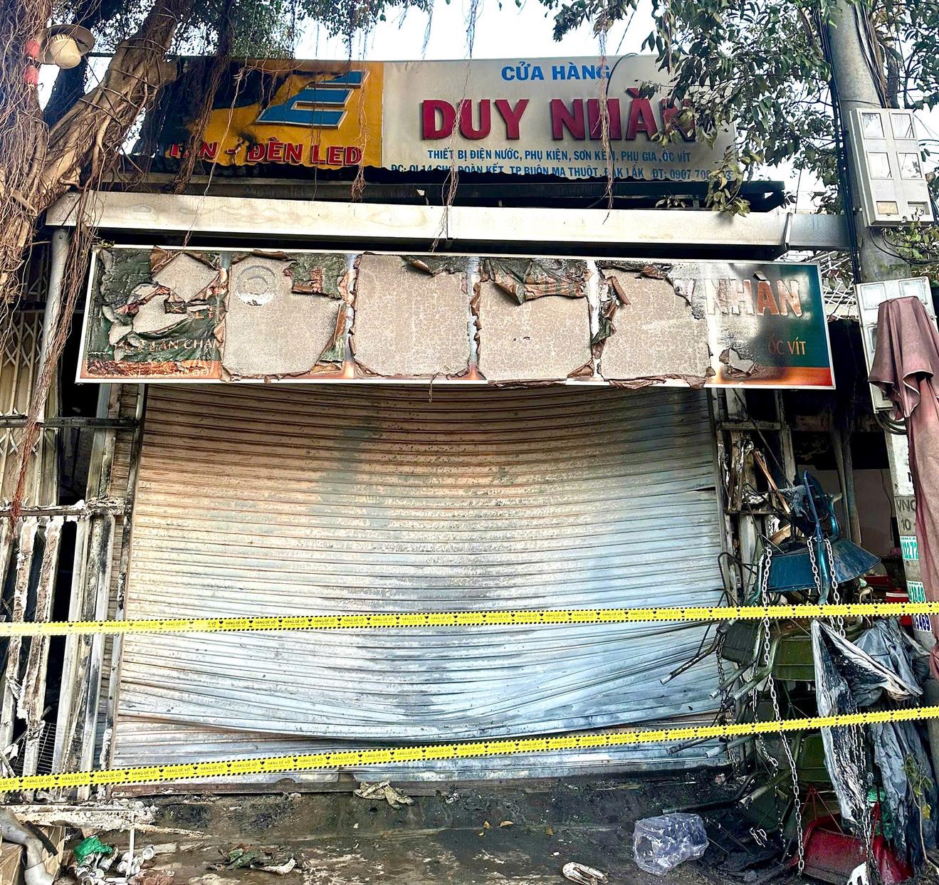 Khoảng 2 giờ 55 phút ngày 27/12, tại tiệm điện nước Duy Nhàn (khu vực chợ Đoàn Kết, xã Hòa Phú, tỉnh Đắk Lắk) bất ngờ xảy ra vụ cháy lớn. Thời điểm xảy ra hỏa hoạn, trong nhà có 5 người đang ngủ.(Ảnh: VTC News).
