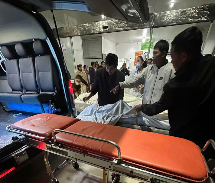 Xe chữa cháy đưa nạn nhân đi cấp cứu (Ảnh: VTC News).