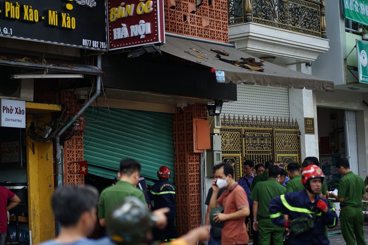 Hơn 4 giờ cùng ngày, đám cháy phát ra từ một quán ốc cao 4 tầng nằm trên đường Trần Hưng Đạo. Khói lửa sau đó lan rộng, bao trùm một phần căn nhà. Phát hiện cháy, người dân chạy đến dùng bình chữa cháy mini dập lửa song bất thành.