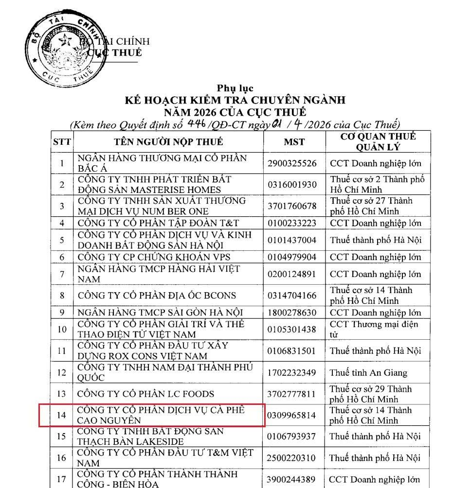 Highlands Coffee lãi EBITDA gần 1.100 tỷ đồng, vẫn thuộc danh sách kiểm tra chuyên ngành 2026 của Cục Thuế
