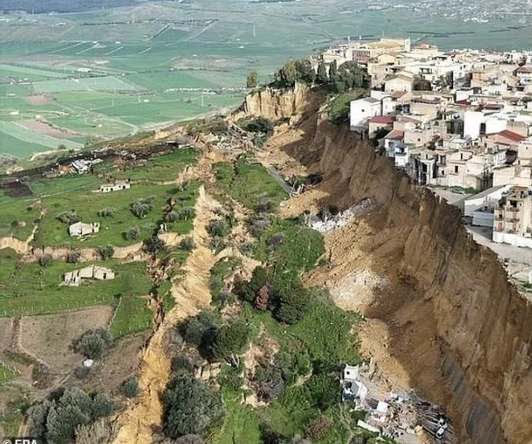 Một đợt lở đất lớn kéo dài hơn 4 km đã biến thị trấn Niscemi ở miền nam Sicily (Ý) thành khu vực nguy hiểm, khiến các ngôi nhà và xe cộ gần như treo lơ lửng trên bờ vực sau mưa lớn do Bão Harry gây ra. Hơn 1.500 người đã được sơ tán.