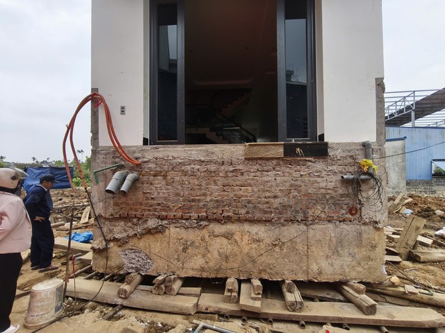 Nhóm thợ đã mất 18 ngày đào sâu 3m đất, nâng toàn bộ ngôi nhà 2 tầng lên cao, đồng thời cắt phần sàn nhà, sân trước và một phần phía sau để khớp với kích thước lô đất của ông Hữu.
