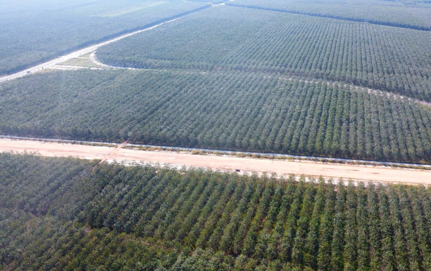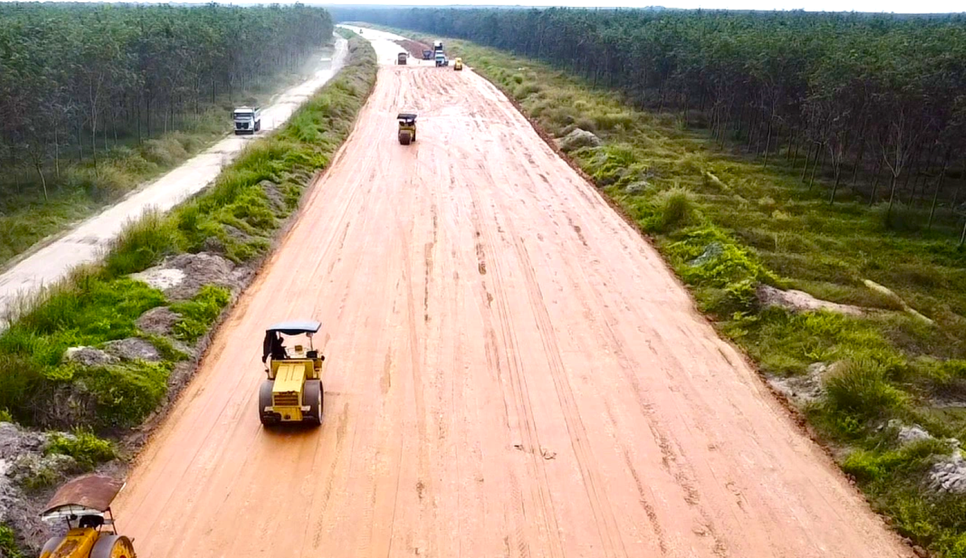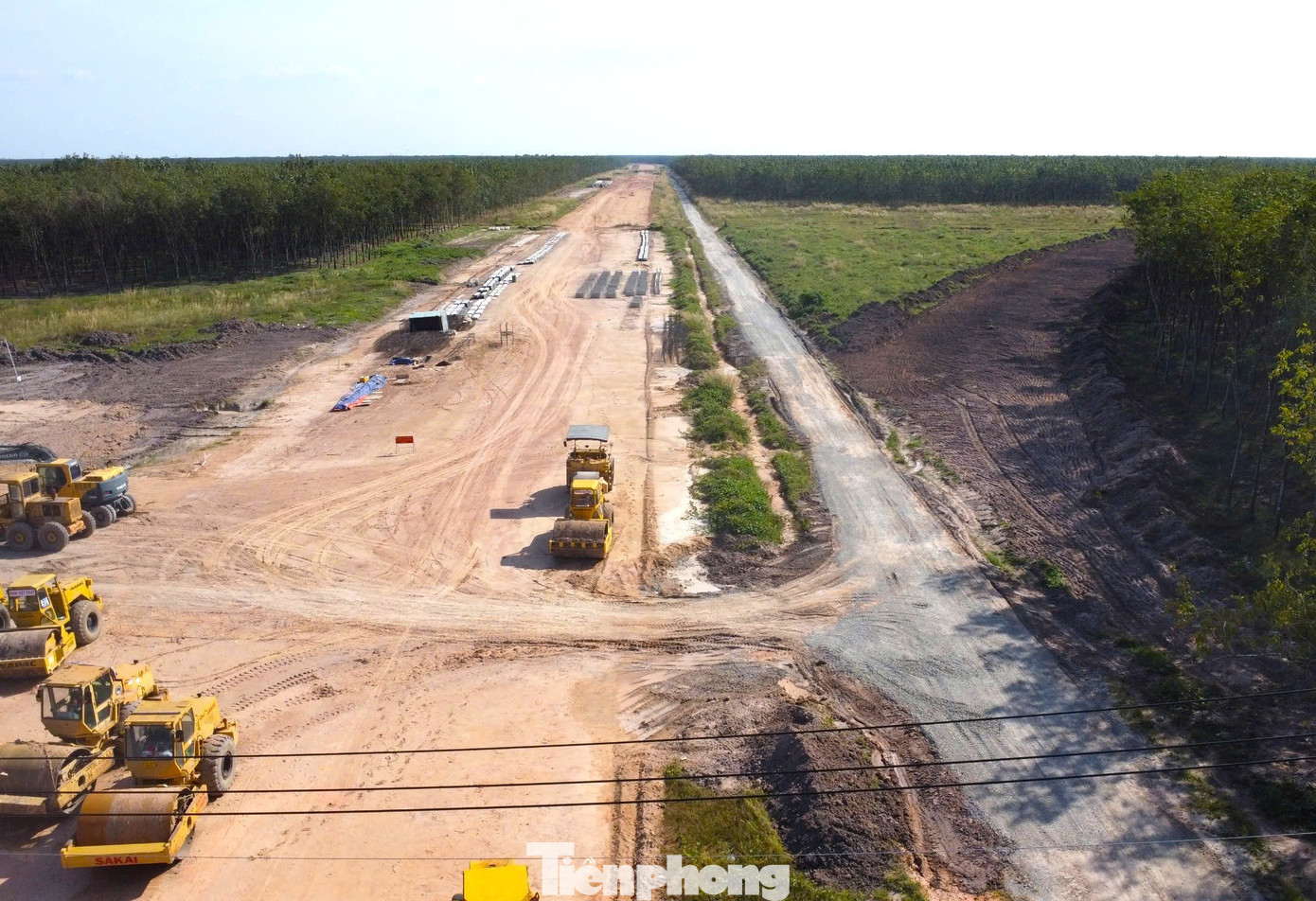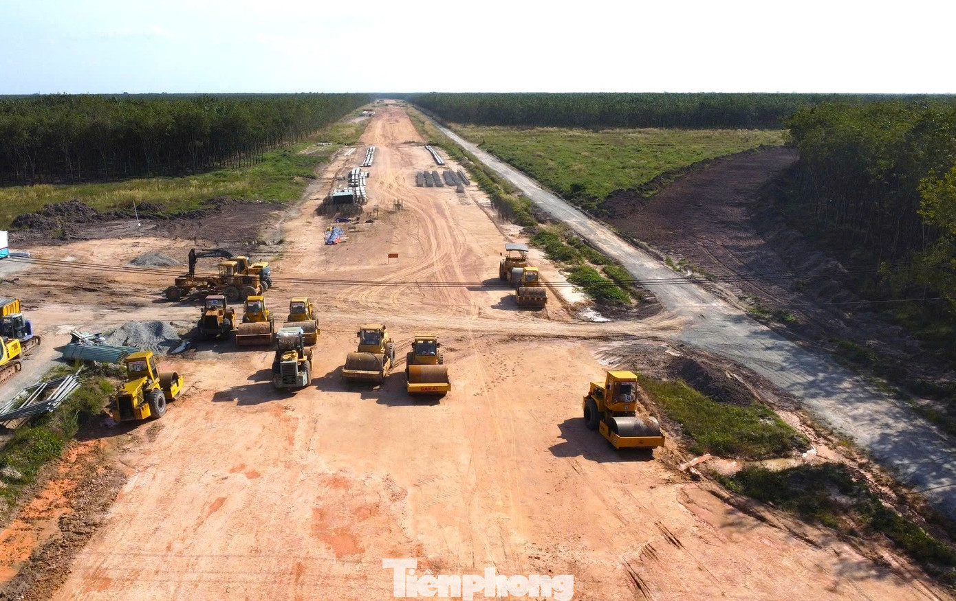 Hiện nay, nhà thầu thi công đang trải nền đường tại các vị trí đã bàn giao mặt bằng và hình dáng đường cao tốc TPHCM - Thủ Dầu Một - Chơn Thành đang dần hình thành.