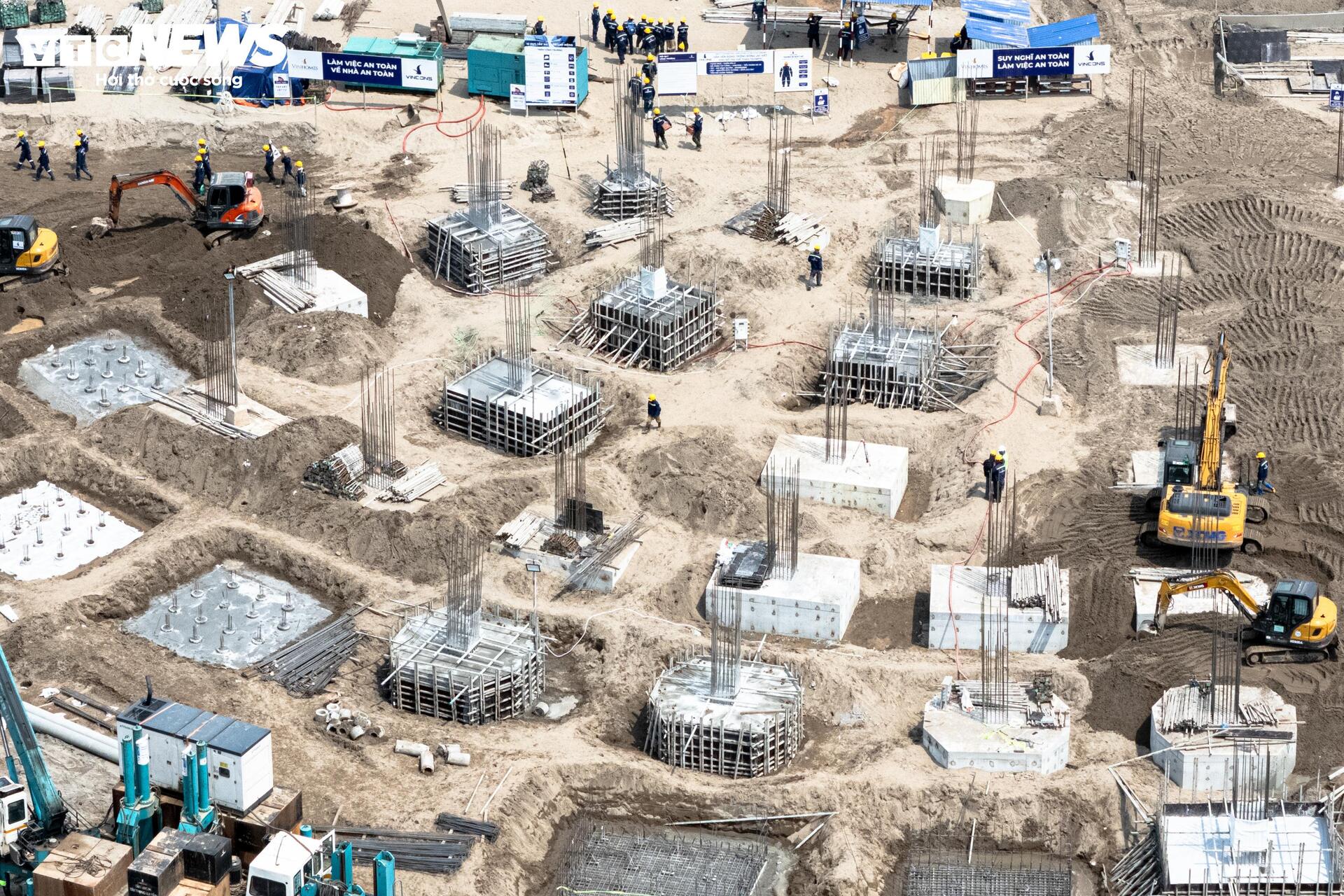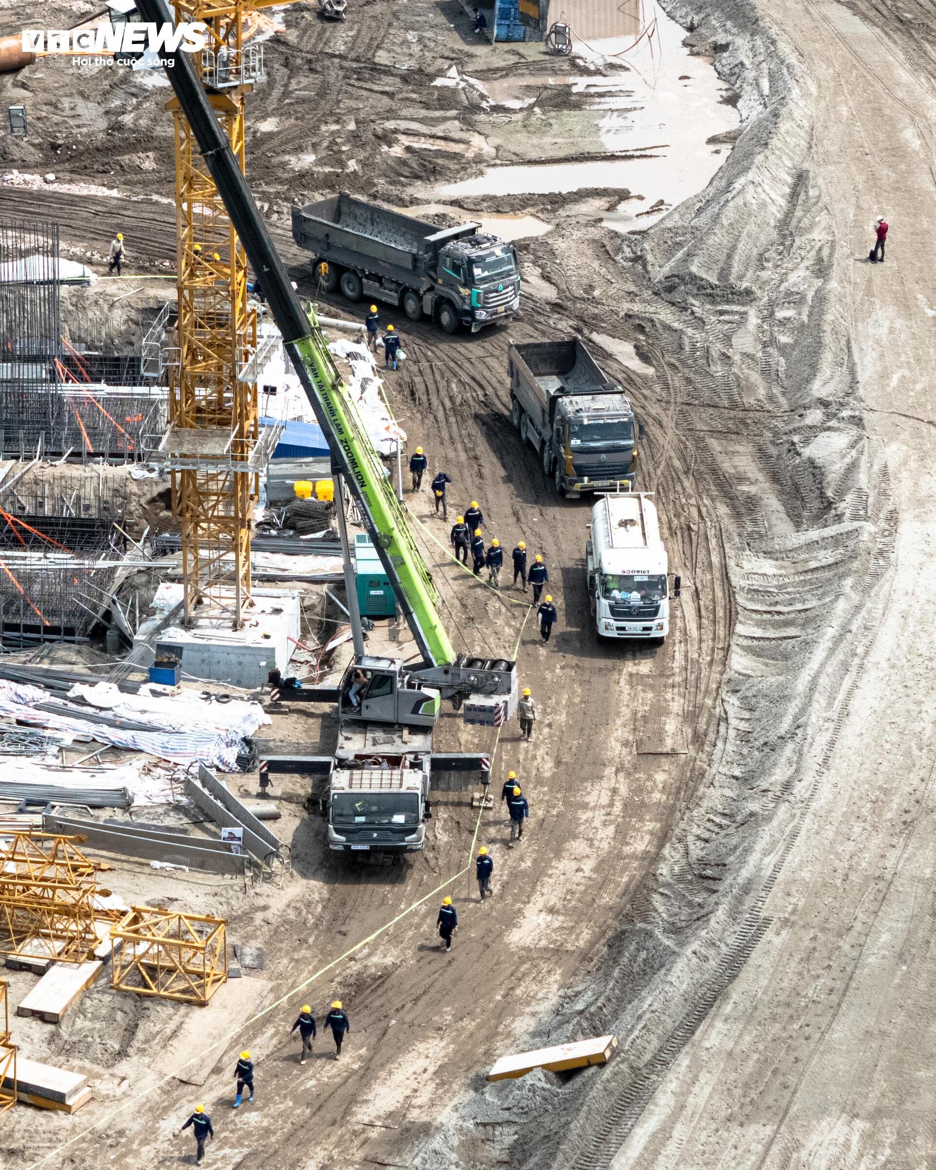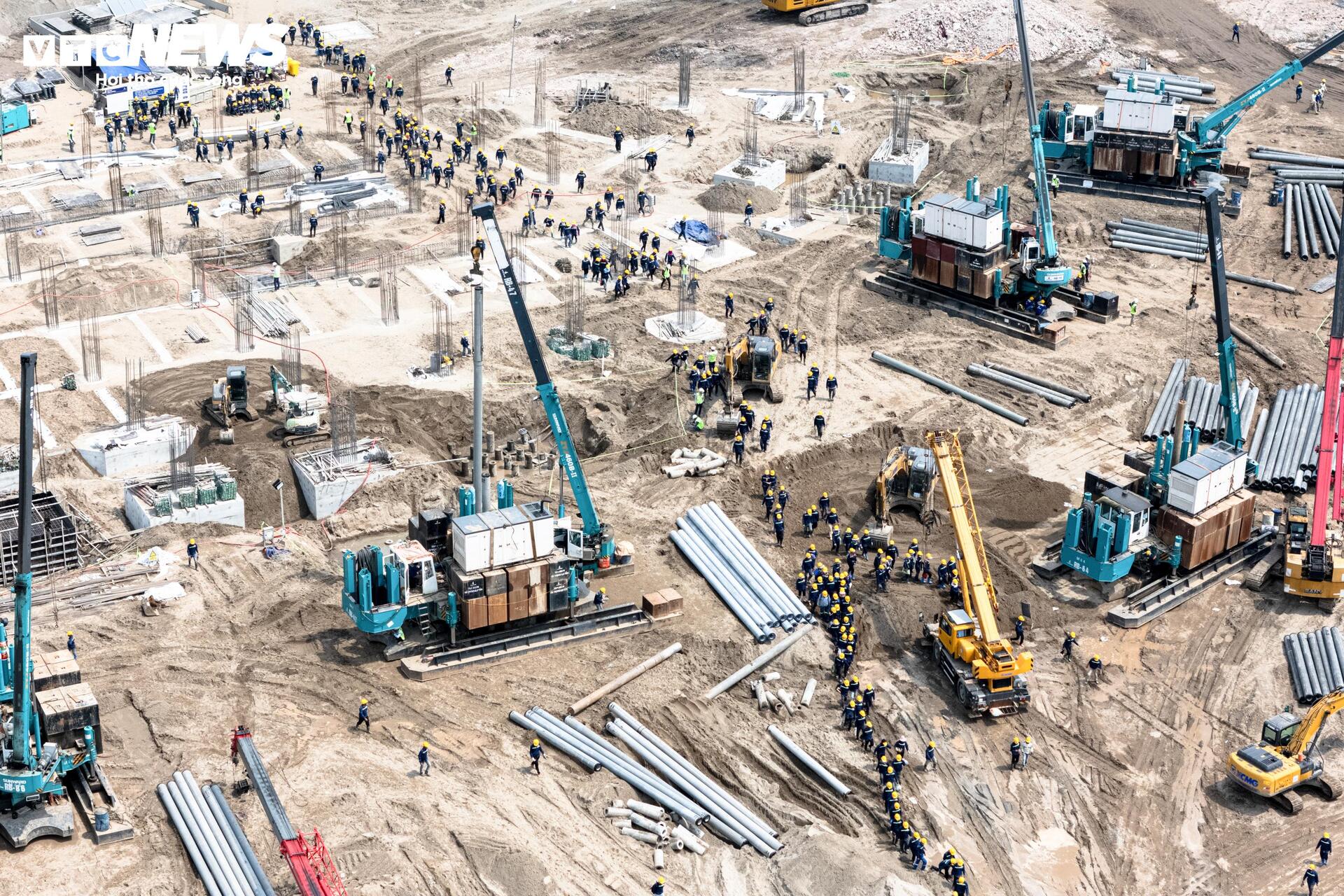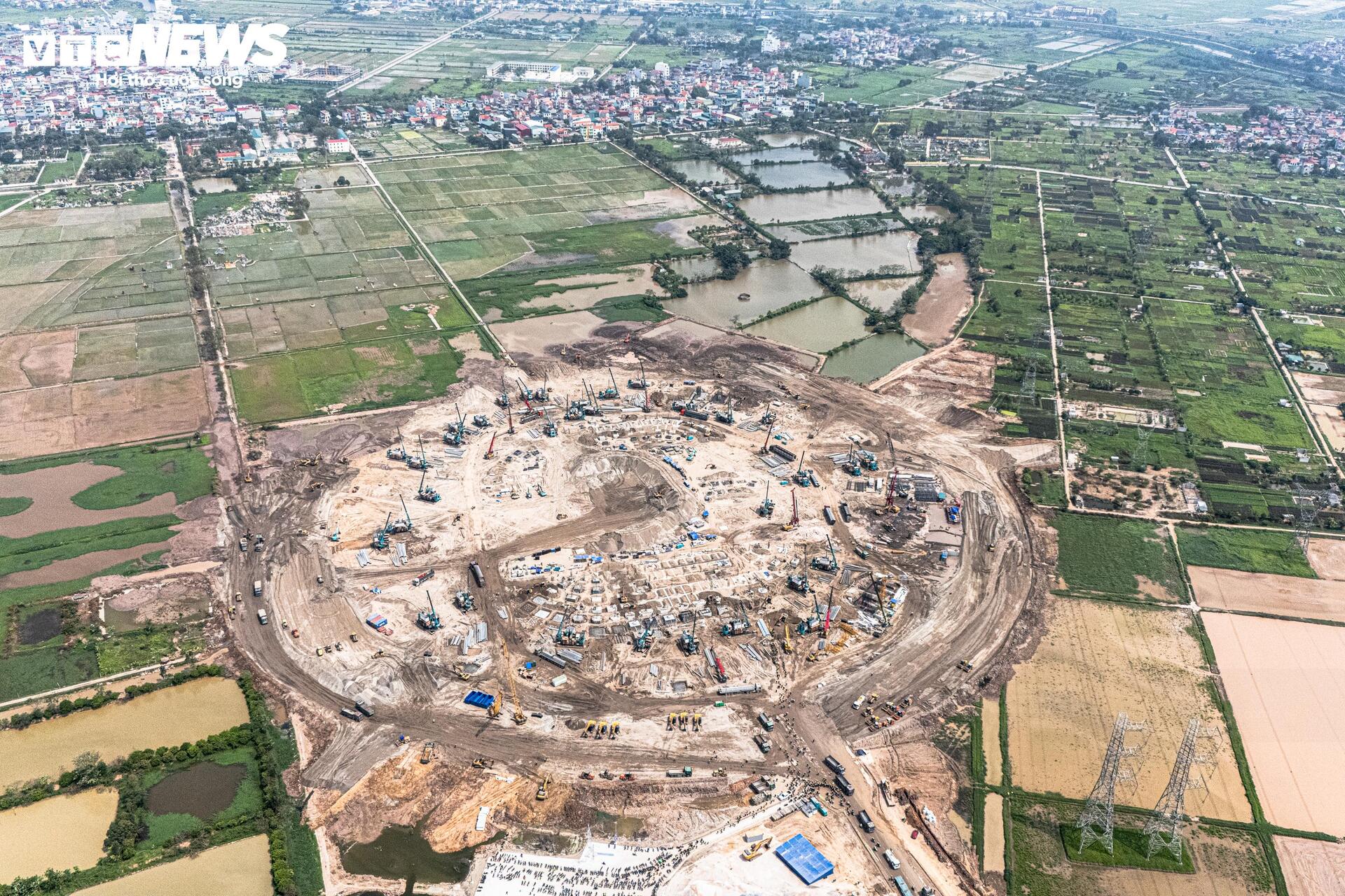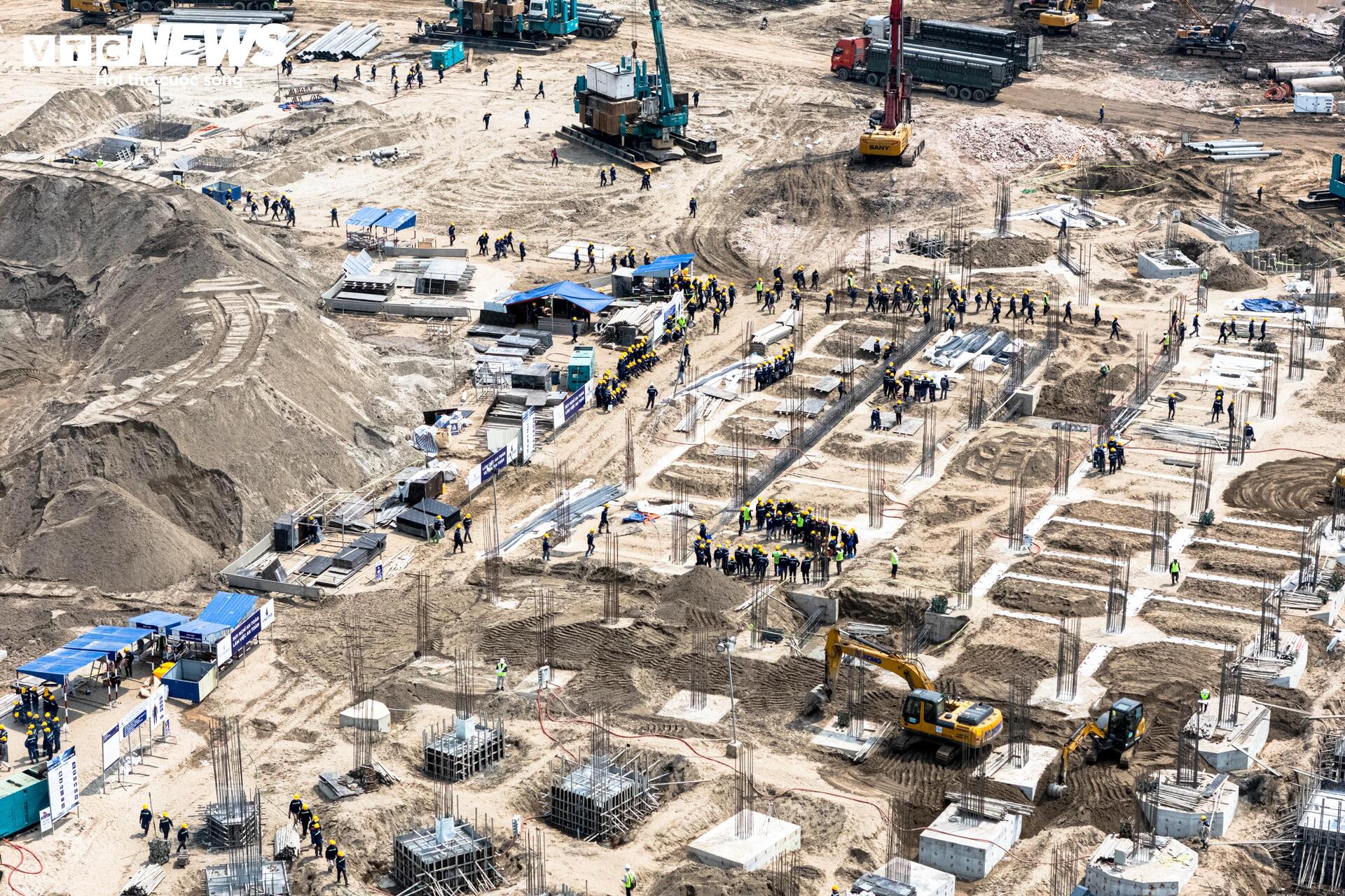 Công trường sân vận động Trống Đồng 135.000 chỗ ngồi - hạng mục trung tâm của dự án Khu đô thị thể thao Olympic - đang được thi công với quy mô lớn.