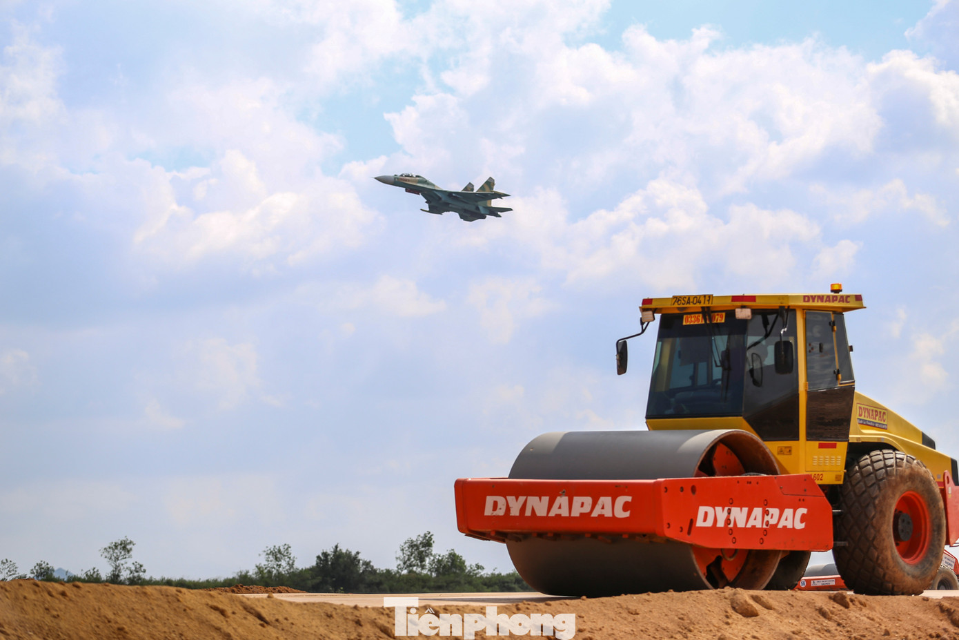 Trên từng hạng mục cụ thể, các tổ, đội thi công khẩn trương san nền, lu lèn theo đúng quy trình kỹ thuật; song song đó, lực lượng khảo sát địa chất thường xuyên bám hiện trường, liên tục kiểm tra độ ổn định của nền móng. Trên mặt bằng thi công, những chiếc máy xúc gầm vang, xe vận chuyển cỡ lớn nối đuôi nhau miệt mài đưa vật liệu về công trường, tạo nên nhịp lao động hối hả, không ngơi nghỉ.