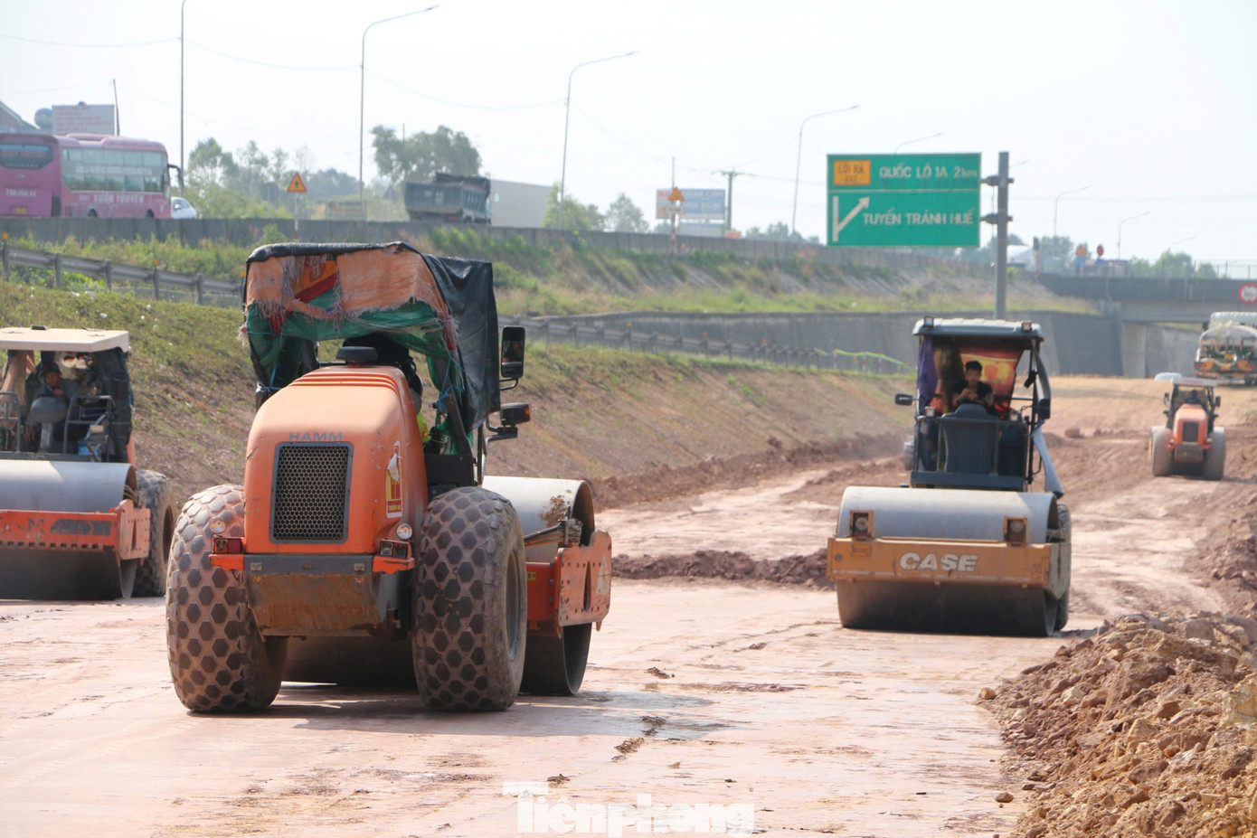 Tại các đoạn mở rộng cao tốc qua phường Kim Long, Kim Trà, Hương Trà, nhịp thi công được tăng tốc, xe máy, nhân lực hiện diện dày đặc. Tranh thủ thời tiết nắng ráo những ngày đầu năm, các đơn vị tập trung xử lý bóc phong hóa đồi, đắp nền đường, đào đất tại vị trí cao, đắp bù ở các đoạn trũng, lu lèn nền ở những vị trí mở rộng từ 2 lên 4 làn xe.