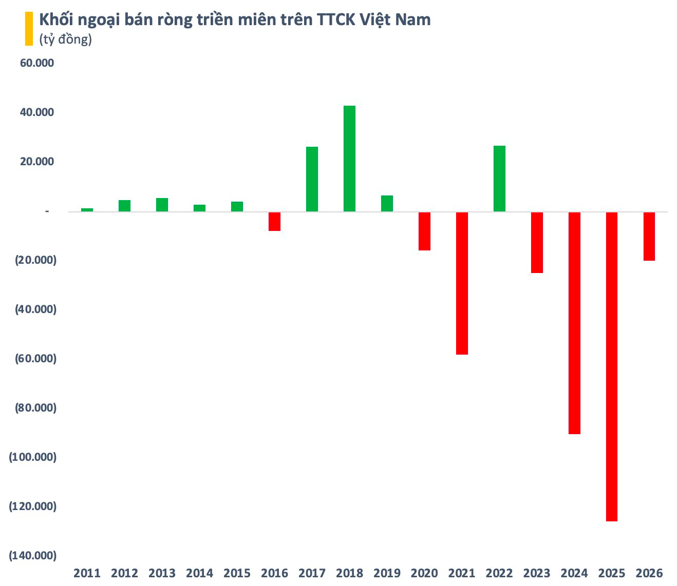 “Khối ngoại bán ròng” có lẽ là cụm từ nhà đầu tư chứng khoán Việt Nam được thấy nhiều nhất trong vài năm trở lại đây. Nhà đầu tư nước ngoài đã bán ròng triền miên cổ phiếu Việt Nam suốt từ năm 2023 đến nay, với tổng giá trị 260.000 tỷ đồng tính riêng trên HoSE.