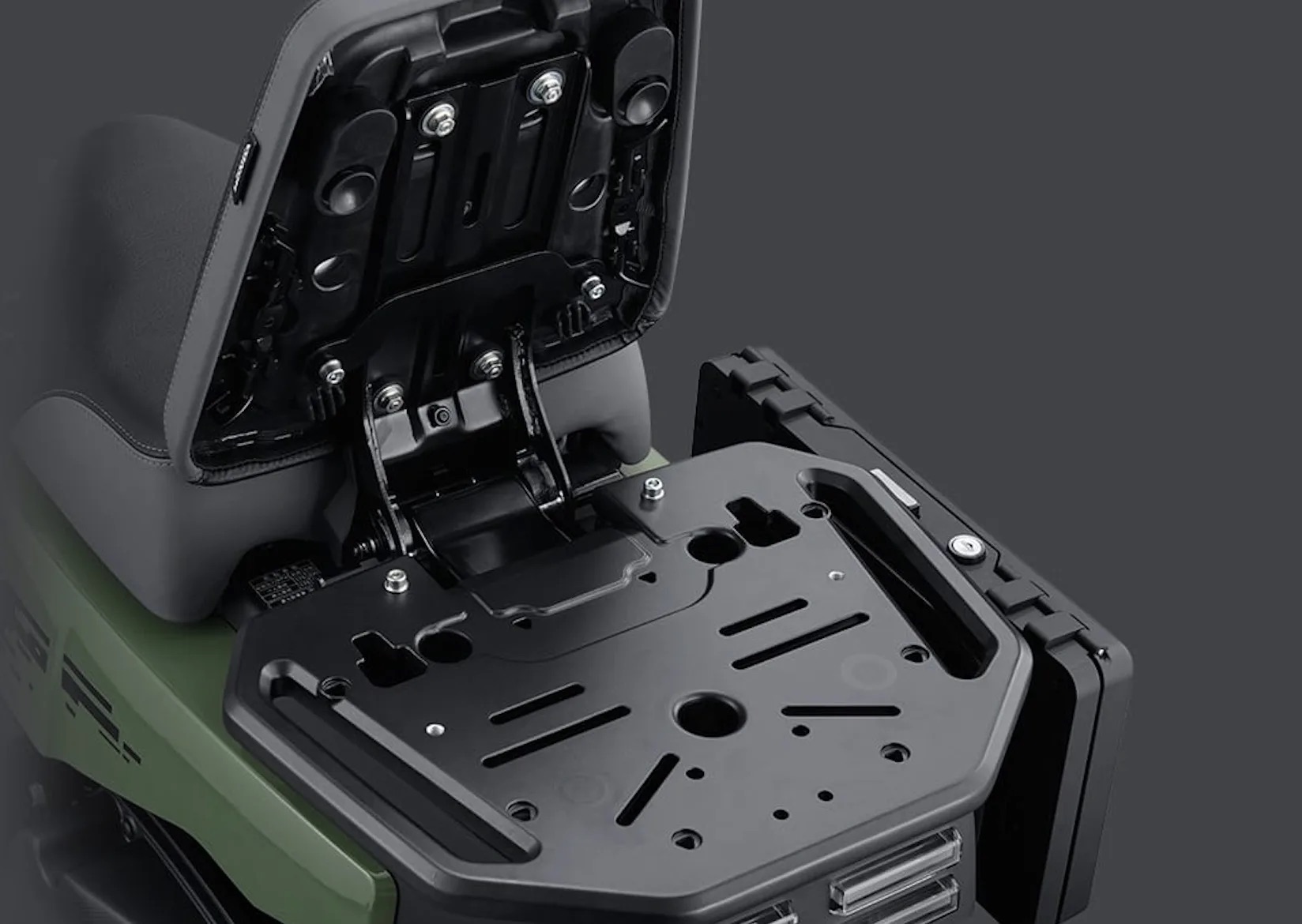 Đúng với định hướng xe phiêu lưu, Square X125 được trang bị sẵn thùng chứa đồ phía sau, giá chở hành lý, bàn gập dã ngoại và bộ phụ kiện phục vụ hoạt động ngoài trời. Khi lắp thùng sau, xe chỉ bố trí chỗ ngồi cho một người. Phần cụm đèn được bảo vệ bằng khung che, trong khi kính chắn gió phía trước có kích thước nhỏ gọn, thiên về tính thẩm mỹ và hỗ trợ gió cơ bản.
