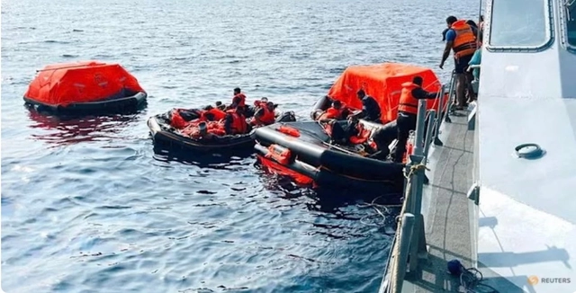 Lực lượng Sri Lanka cứu hộ tàu Iran IRIS Dena sau khi bị ngư lôi Mỹ đánh chìm ngày 4/3. (Ảnh: Reuters)