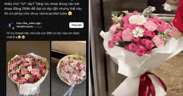 Mới đây, trên Threads, một tài khoản gây chú ý khi chia sẻ câu chuyện bị một shop hoa tươi ở Hà Nội... block. Theo chia sẻ, chủ tài khoản cho rằng shop hoa đã "đánh tráo khái niệm", "treo đầu dê bán thịt chó" khi báo giá hoa một đằng nhưng khi inbox hỏi mua lại hét giá một kiểu. Bài đăng nhanh chóng thu hút hơn 200.000 lượt tương tác, hiện đang là chủ đề được cư dân mạng quan tâm.