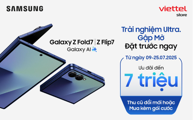 Galaxy Z Fold7 | Z Flip7 đã chính thức ra mắt, Viettel Store triển khai chương trình đặt trước đặc biệt, ưu đãi đến 7 triệu đồng chính thức bắt đầu từ nay đến hết ngày 25/07 và trả hàng từ ngày 26/07.